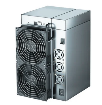 The miner runs quietly with a noise level of under 55db, equipped with 4 fans for cooling. It has Ethernet connectivity and can operate within a temperature range of 5 – 35 °C and humidity range of 5 – 95%.
